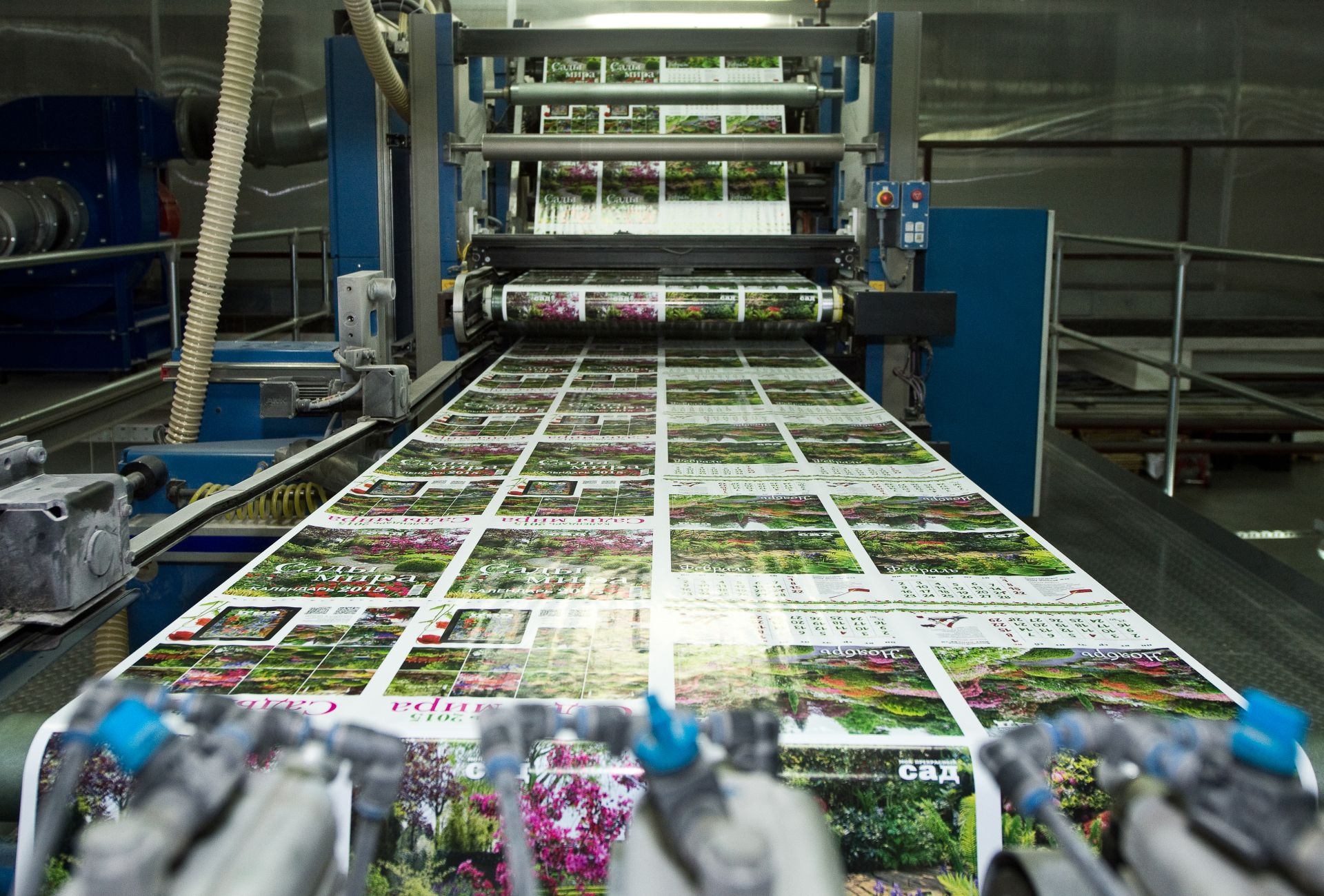 Web press with different variants of folding both of the finished product with the gluing and cutting in line, and semi-finished products for further finishing. Press that allows to use waterbased or aroma lacquer in line, perforation and die-cutting.