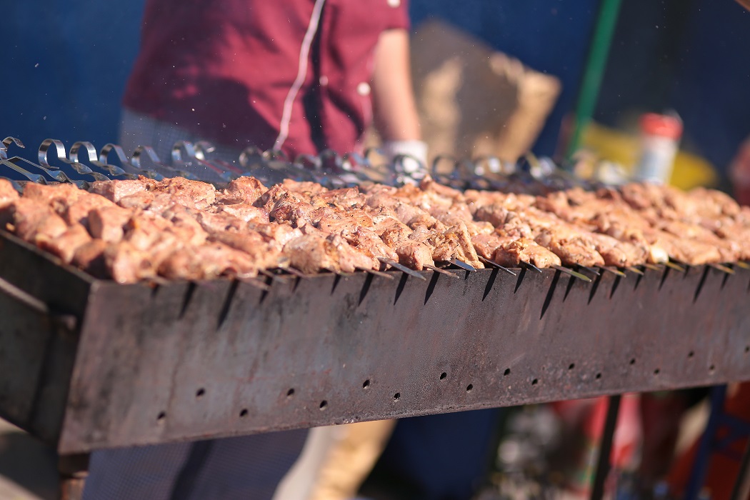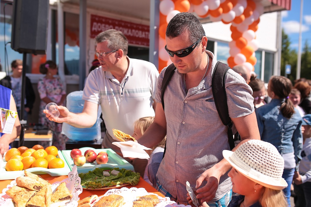 По окончании экскурсии работников и гостей мероприятия пригласили к столу. Ароматный шашлык, свежие овощи, прохладительные напитки были предложены всем гостям праздника. Про маленьких гостей тоже не забыли. Они смогли полакомиться сладкой ватой, свежими фруктами и вкусными соками.