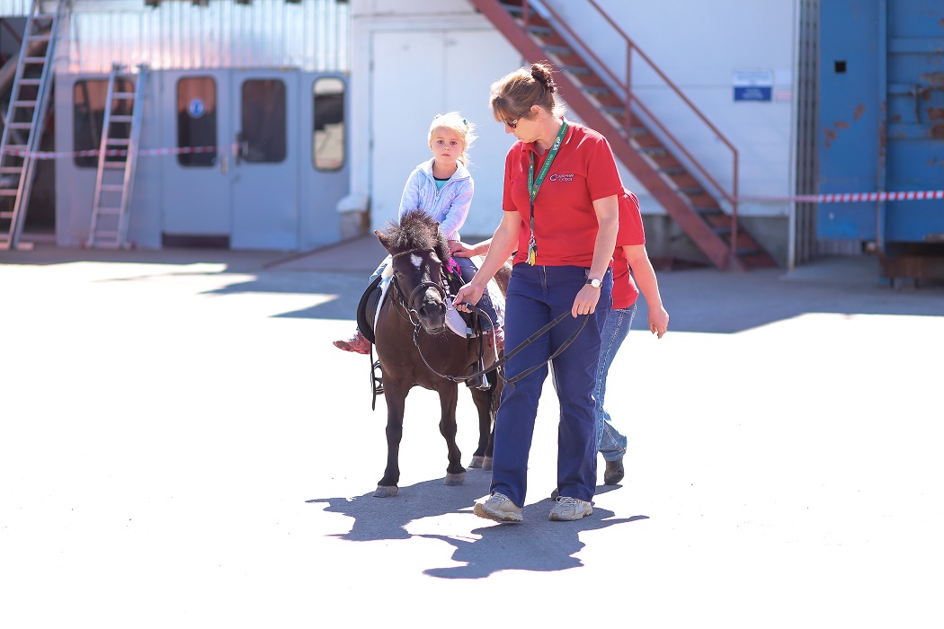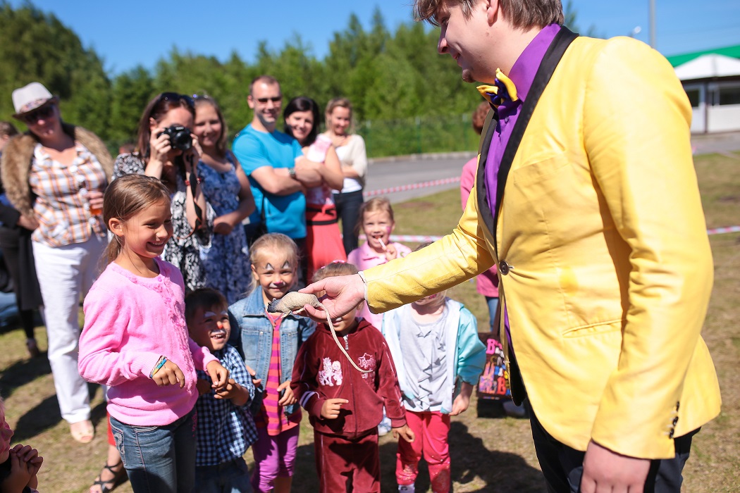 Особым подарком для всех участников стала интересная программа «Дня открытых дверей». Спортивные эстафеты: мега лыжи, минное поле, бои сумо. Дети весело прыгали на батуте, катались на пони и участвовали в крио-химическом шоу «Чудеса науки» и удивлялись чудесам фокусника. И взрослых и маленьких гостей праздника порадовало выступление дрессированных животных, в котором участвовали веселые собачки, хорьки, морские свинки, енот-счетовод и дикобраз.